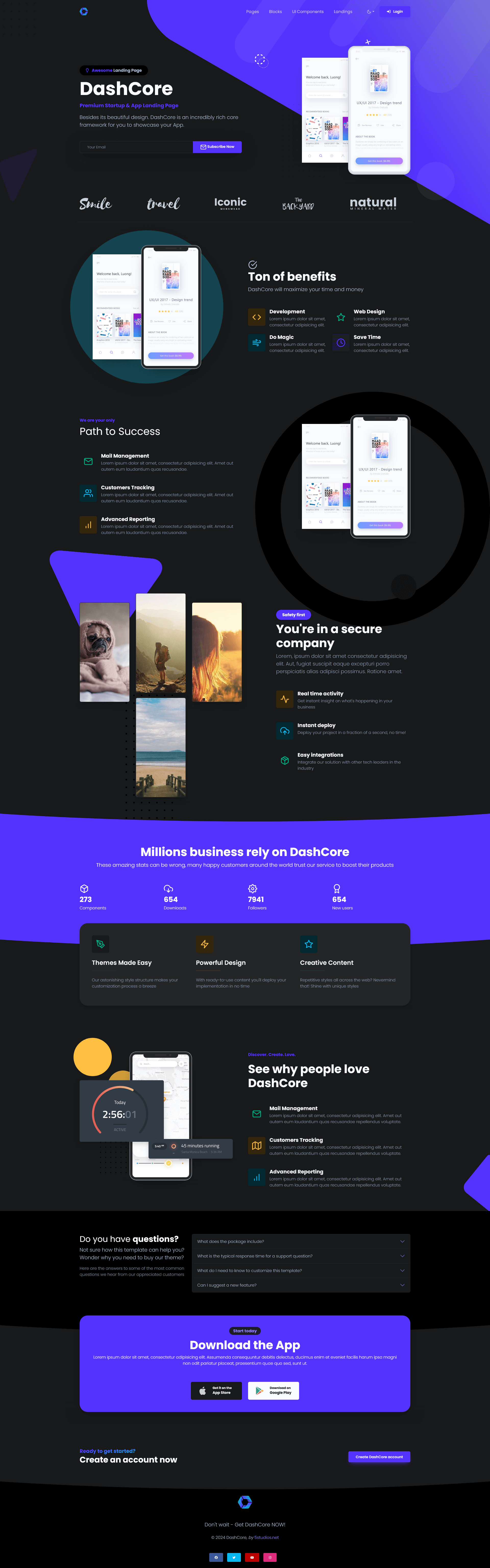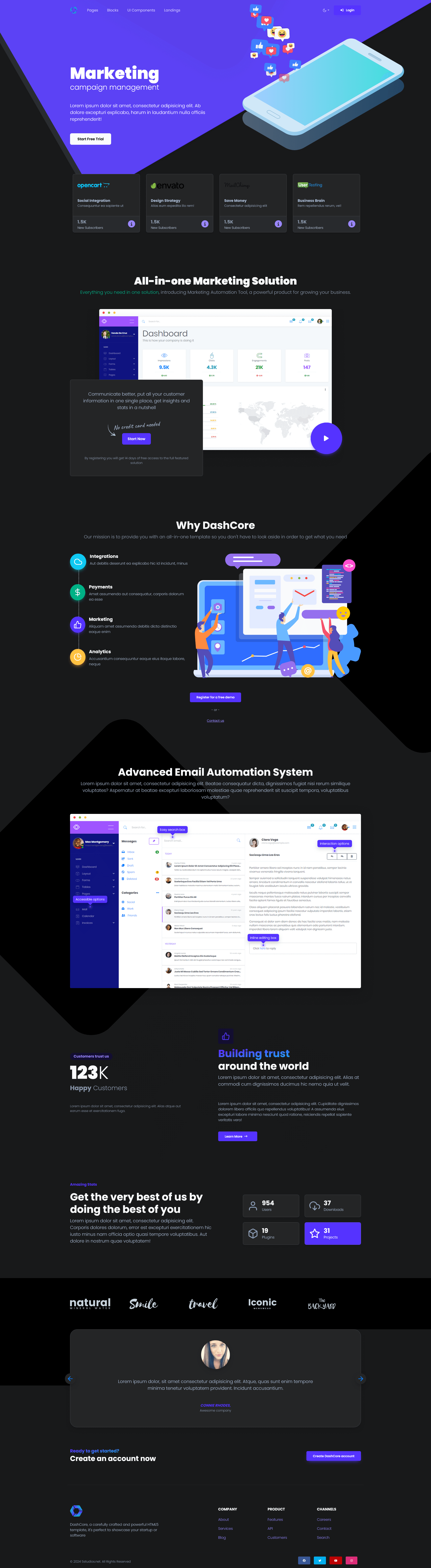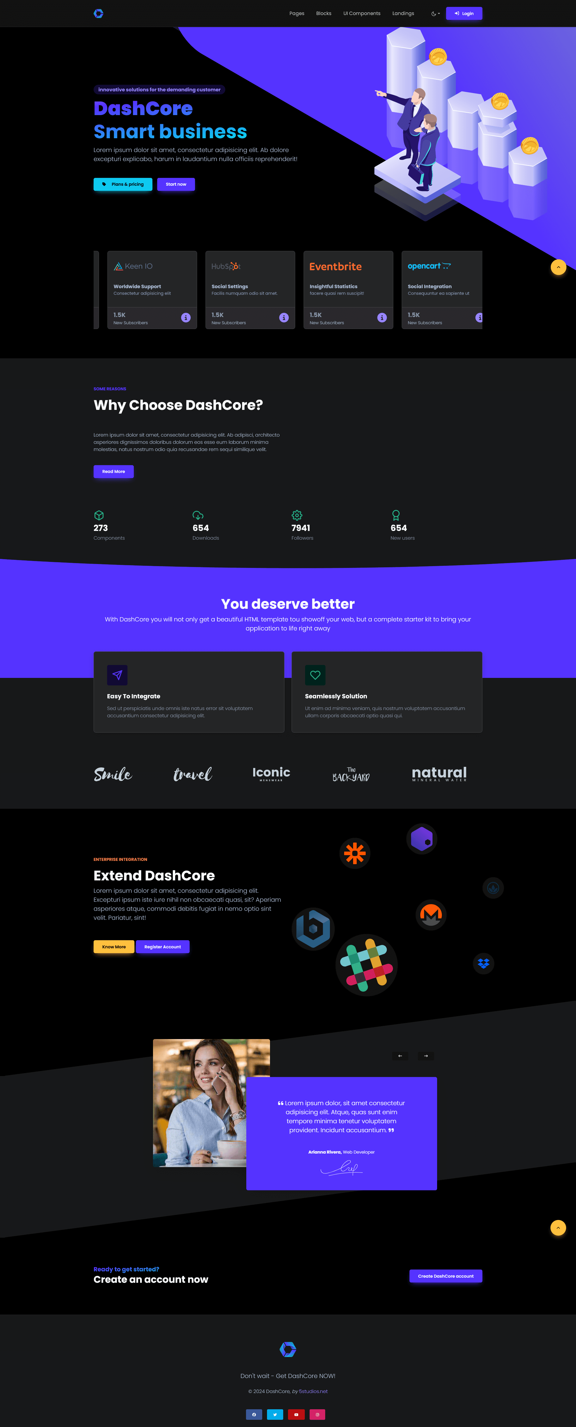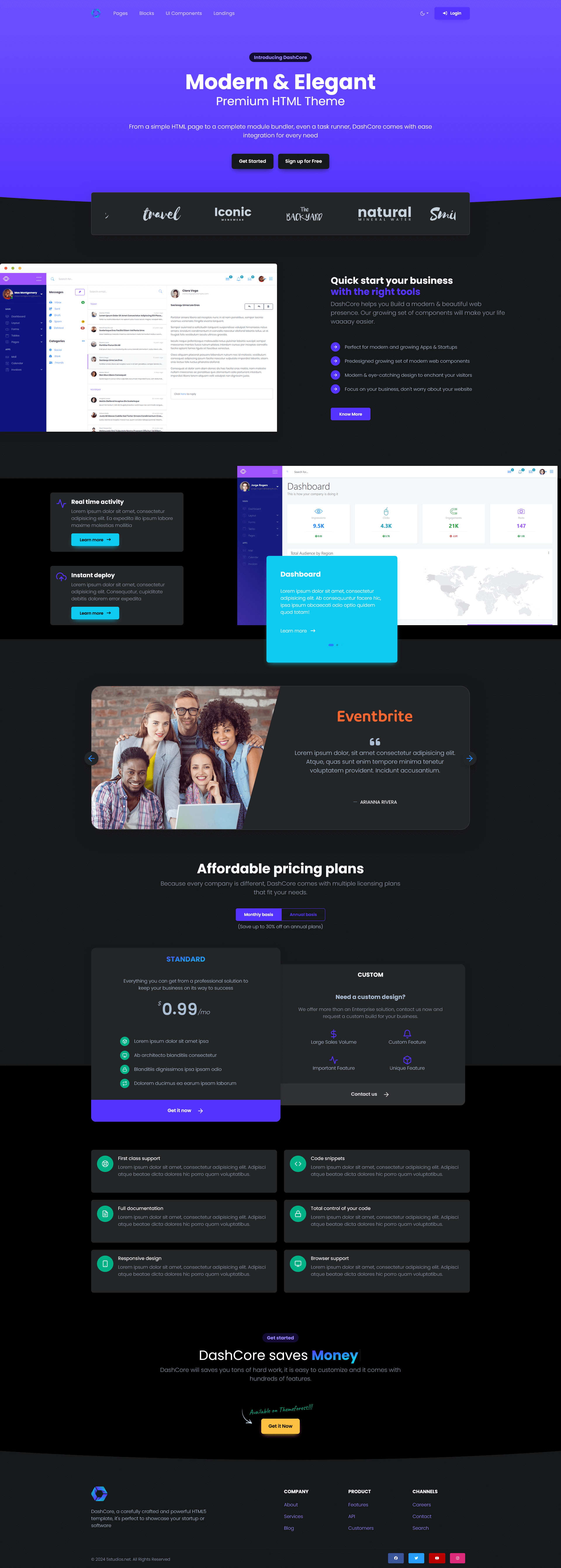 DashCore is a Bootstrap 5 HTML template. Designed to help you promote your solution in an easy and beautiful way.